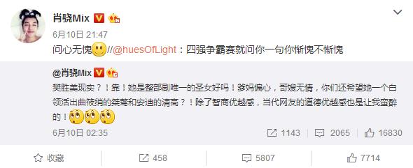 而他淘汰的同时,晋级的肖骁也成为了众矢之的,两方的粉丝更是不可避免地开始了撕X。两位正主也都表了态。