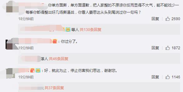 现在好了,下场明撕姜思达,分不清粉丝和思达的立场,分不清什么样的内部矛盾可以暴露什么不可以,抱团明显还不承认,热爱撕网友还玻璃心,怼粉丝的话不谈正不正义,连那点聪明劲爽快劲都没有了。