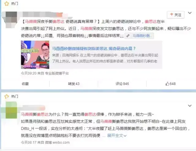 打开一看是这样的:马薇薇手撕姜思达?奇葩说有黑幕?