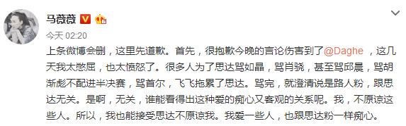 随后马薇薇又发布一条给思达道歉。。。