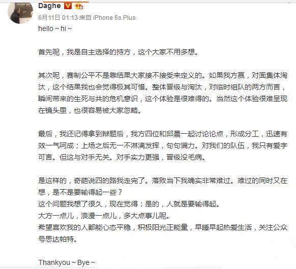 而肖骁则表示自己进四强问心无愧。