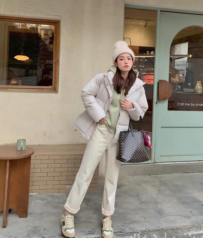身在北方的姐妹们,出门在外一定少不了这种暖暖的大被子羽绒服吧?过膝长度,既有着极佳的保暖度,还能巧妙遮掩起身上的缺点,内搭浅色卫衣,下身搭配一条黑色打底裤,不得不说的是,这么穿真的非常显瘦啊~为了能让整个造型看起来更加显层次感,可以选择一双彩色的袜子外穿,搭配运动鞋后,那种韩范气息就出现了。
