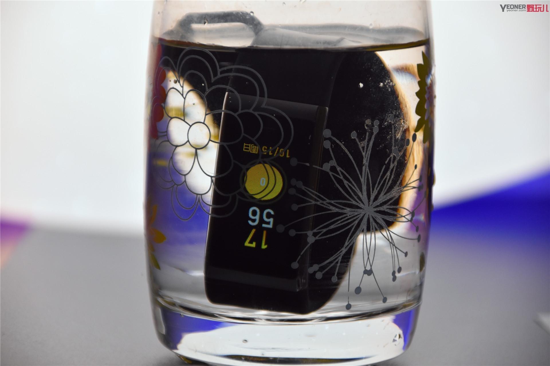 为了某些特殊的运动需求,手环一般都会具备防水功能。根据官方的参数,米动手环支持50米防水,虽然不会游泳,不能进行深水测试,顺手拿来水杯泡上它,半小时过去了米动手环依然能够正常工作,触屏也丝毫不受影响。