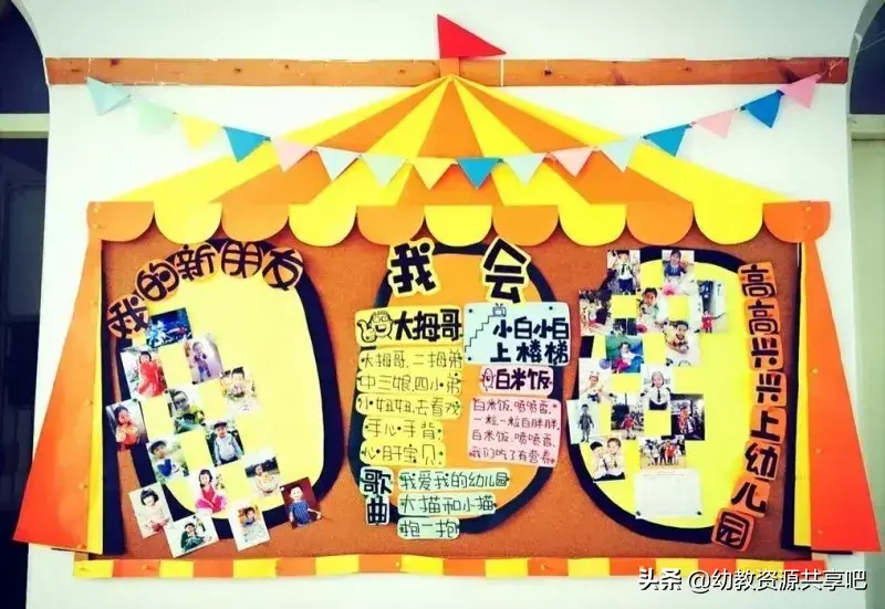 开学最难的就是安抚宝贝的情绪和常规培养了,所以我们的开学主题墙的内容可以是欢迎宝贝回家、高高兴兴上幼儿园、升班、温暖的照片墙、常规培养、安全、一日流程等内容哦~