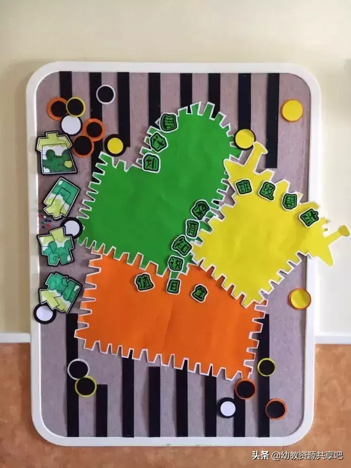 平面主题墙饰已经out了,平平的环创布置无法在吸引幼儿的眼光。半立体手工墙饰才是王道,凹凸错落的布置,更能符合幼儿的视觉感受。
