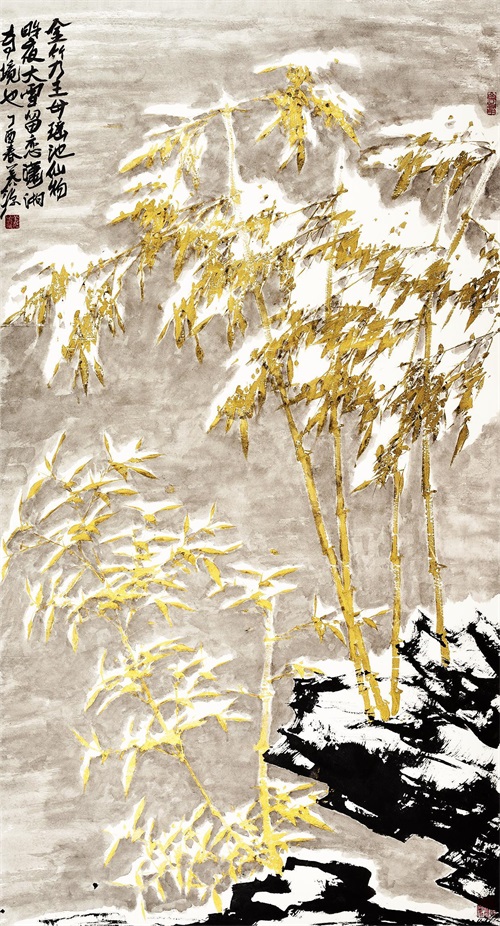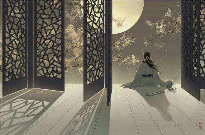 独倚阑珊,月归去,天深如墨,月辉映青竹,碧华倾泻余辉。