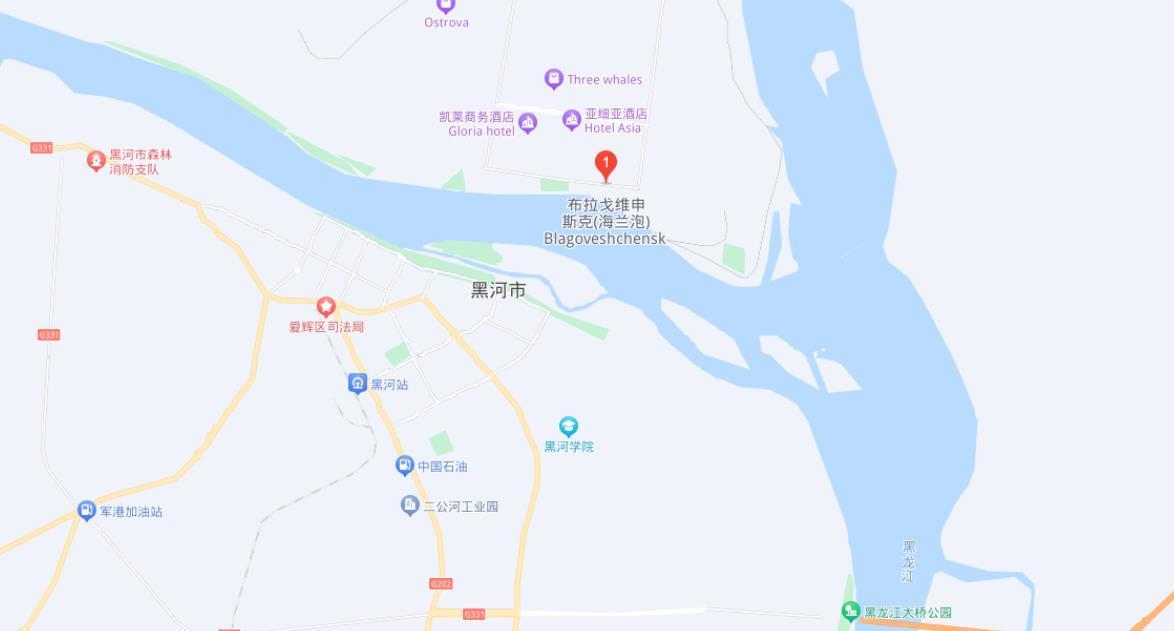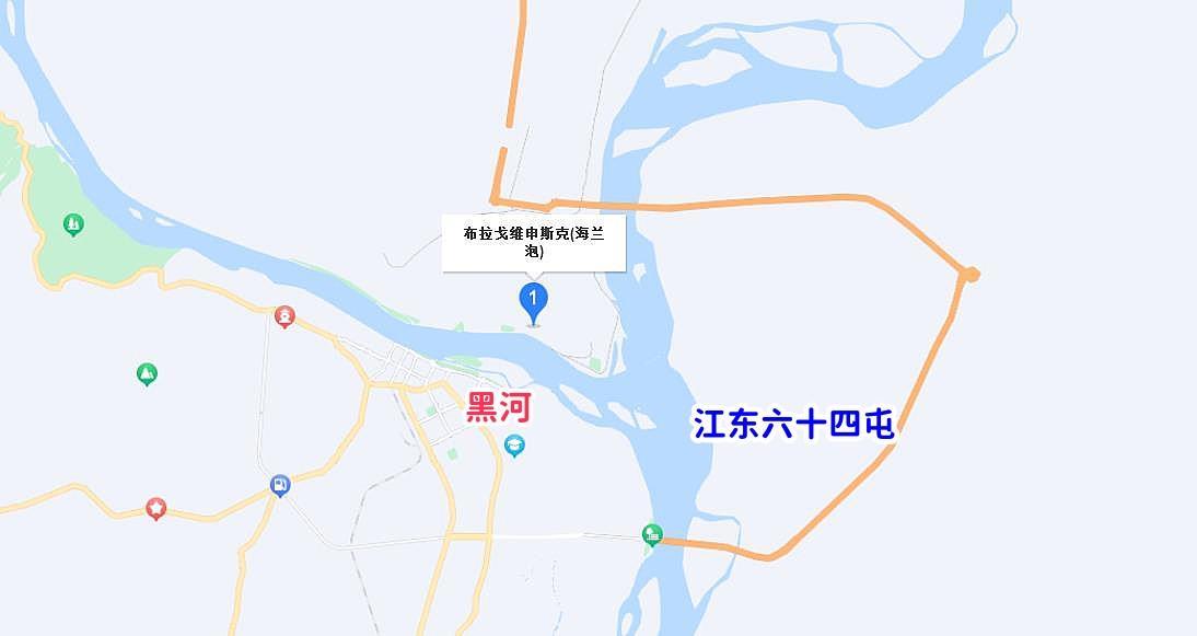 海兰泡(哈喇泊),原名孟家村,位于黑河镇的对岸。原来是中国的一个居民村。沙皇政府侵占了黑龙江以北的中国领土以后,当时,东西伯利亚总督穆拉维约夫就把它改名为布拉戈维申斯克(意为“报喜城”)。