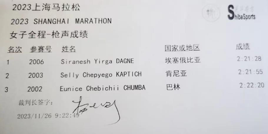 上马女子最强,上马国际女子方面,外籍选手全包冠亚季军,成绩如下: