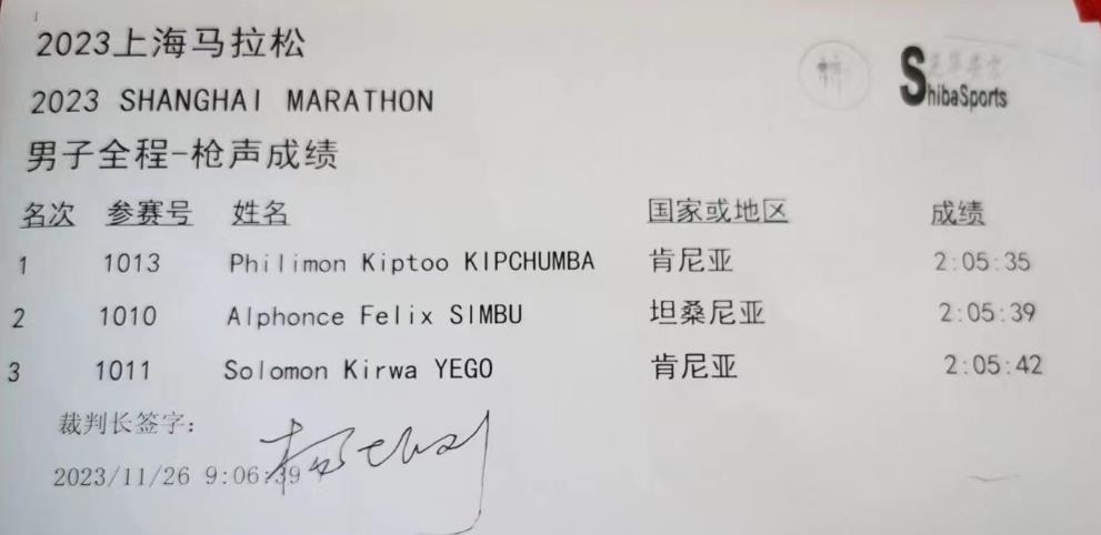 上马男子最强,上马国际男子方面,外籍选手全包冠亚季军,成绩如下: