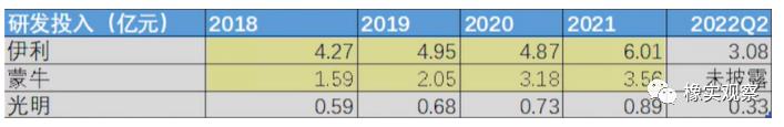 从近四年的研发费用上来看,伊利和蒙牛的研发费用并不算高,相较于千亿元的营收,几个亿的研发费用仅占到了总营收的不到1%,相较于高端科技型企业,在乳品这条赛道上,对于产品研发的投入,在商业回报率上的确没有那么高。