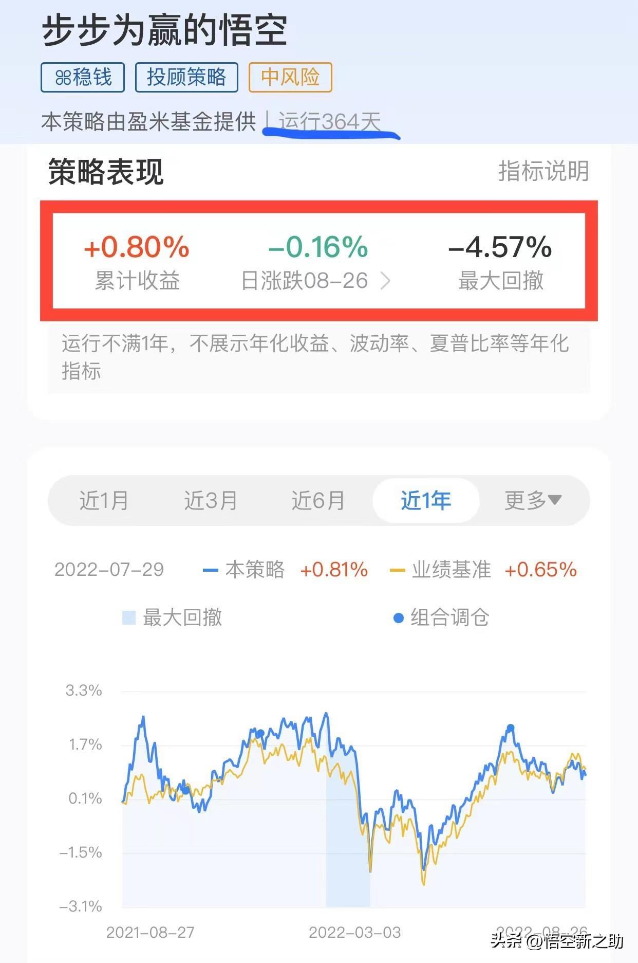 随便举个刚成立一年的策略【步步为赢的悟空】(最近一年收益0.8%)就大幅领先“长赢指数投资计划-150份”(最近1年收益居然-6.01%),劝一些人别那“权益组合所以亏损大”而洗地了,他这个组合明明按照固收做的,历史收益也不是权益收益,但是波动确实权益的,风险和收益完全不对等。