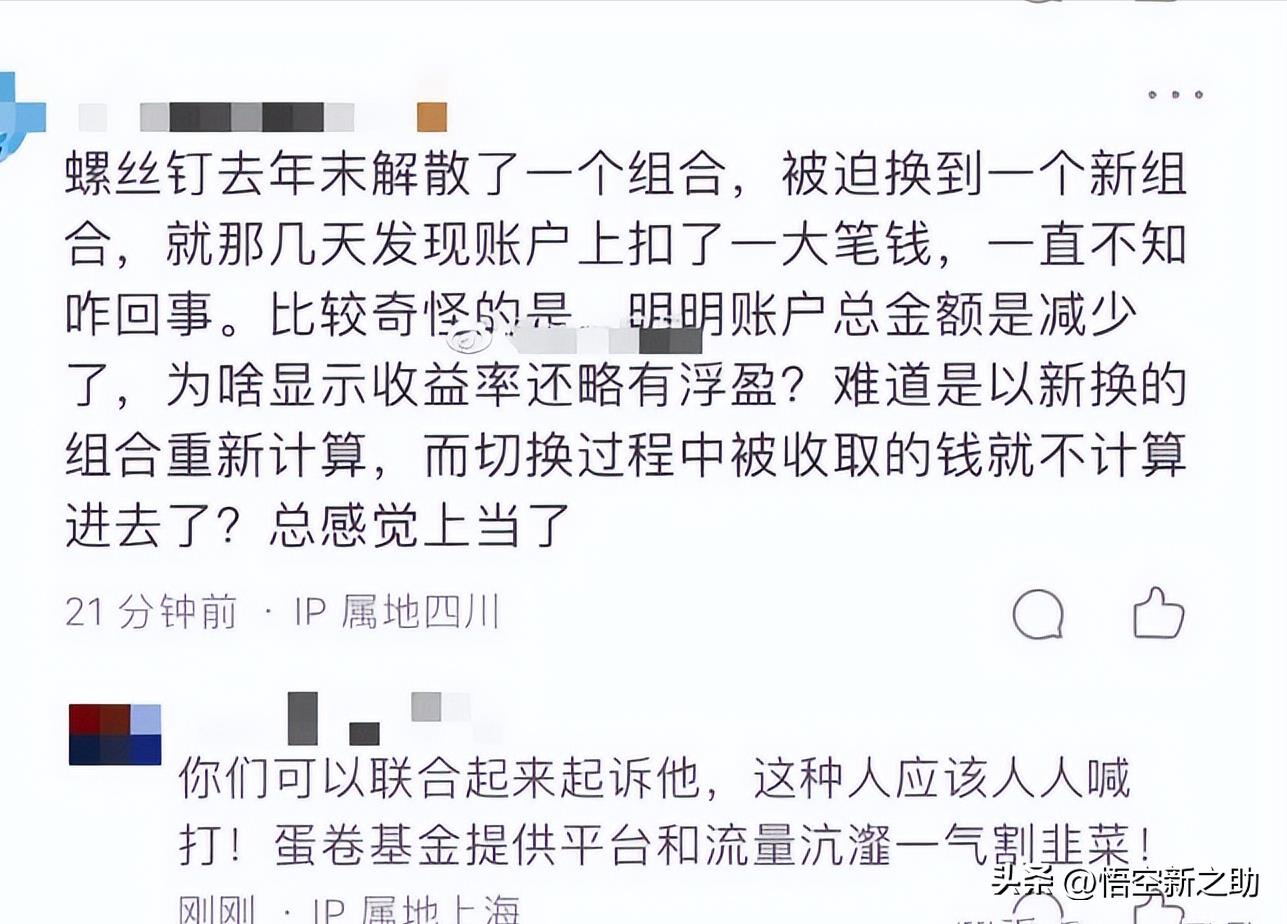 大V螺丝钉更烂了,明目张胆、不择手段通过高频交易割韭菜,因为基金交易有手续费,高频交易一年成本非常高。还有业绩烂了的就删组合重来的恶劣行径(删号重来),没见过比这更狠的割韭菜方法了。