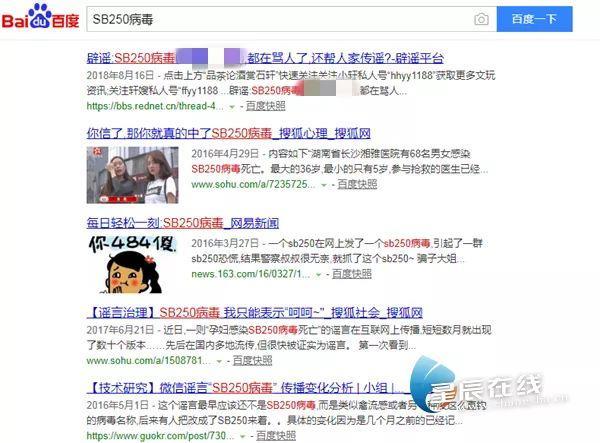(“SB250病毒”谣言的版本多,辟谣的信息也不少。网页截图)