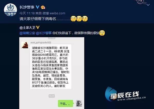 早在2016年4月26日 ,星辰在线已经就“湘雅医院”的版本做过辟谣,并且在同一日,长沙市公安局官方微博“长沙警事”也进行了简单辟谣,提醒大家看一下病毒名上的“讲究”。