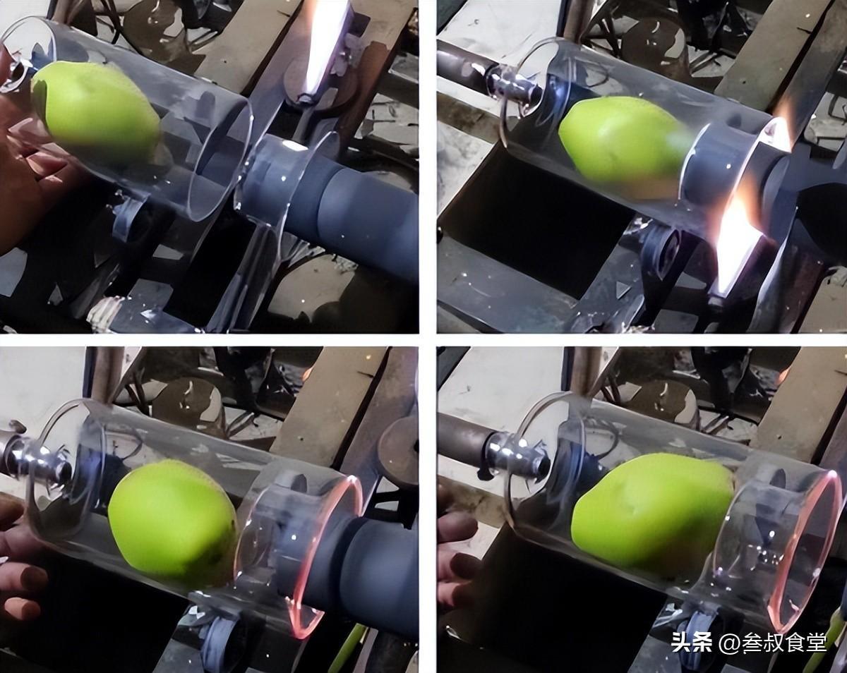 还有一种说法,说是先把梨从未封口的玻璃瓶底塞进去,然后再利用高温加热“焊接”瓶底,这样就能把梨放进去。