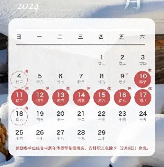 亮点五是政府在假期期间加强了各类文化和娱乐活动的组织和安排。假期虽然放松了工作和学习的压力,但是也需要有更多的文化和娱乐活动来丰富大家的假期生活。政府在这方面也下了不少的功夫,为大家准备了各种精彩的文娱活动,让大家在假期中感受到更多的欢乐和快乐。总的来说,政府在安排2024年春节假期时,尽可能地考虑到了大家的需要和感受,提供了更加人性化和灵活的放假安排,让大家在假期中体验到更多的欢乐和快乐。虽然除夕当天不放假引起了争议,但是政府也在鼓励各单位和机构灵活安排,给大家多放一天假,让大家在假期中既能够享受到亲人团聚的温馨和快乐,又能够尽情地感受生活的美好和多彩。2024年全年假期安排合理,满足了人们的劳逸结合需求。今年的假期调整比较均衡,春节至少放假8天,国庆7天,劳动节5天,元旦、清明、端午、中秋都是3天假期。这样的假期安排,避免了长假之后工作日过长的情况。