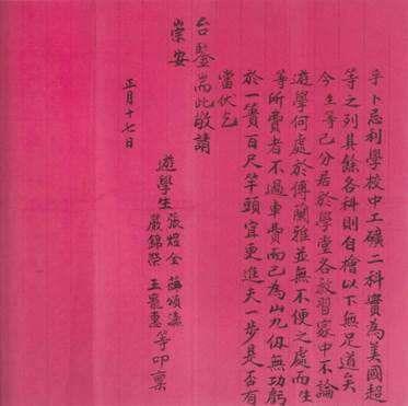 1902年2月24日,王宠惠等4名在加州伯克利大学学习的前北洋大学堂学生致盛宣怀的信(部分)