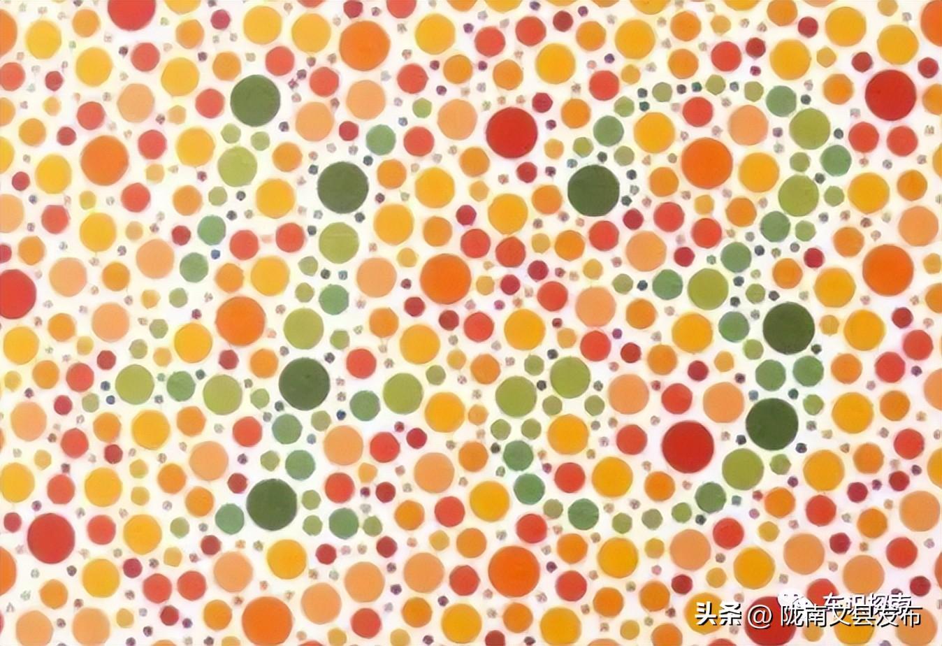 最后一张图难度最大,许多人看一眼可能完全摸不着头脑,不清楚其中到底是数字还是其他形状。这其实是一个反向测试,即正常视力的人是看不到其中的内容的。如果能看到其中的数字4,那就意味着可能是红绿色盲,而看不出任何东西,只看到一片混乱的颜色,则可能是能够继续考驾照的。
