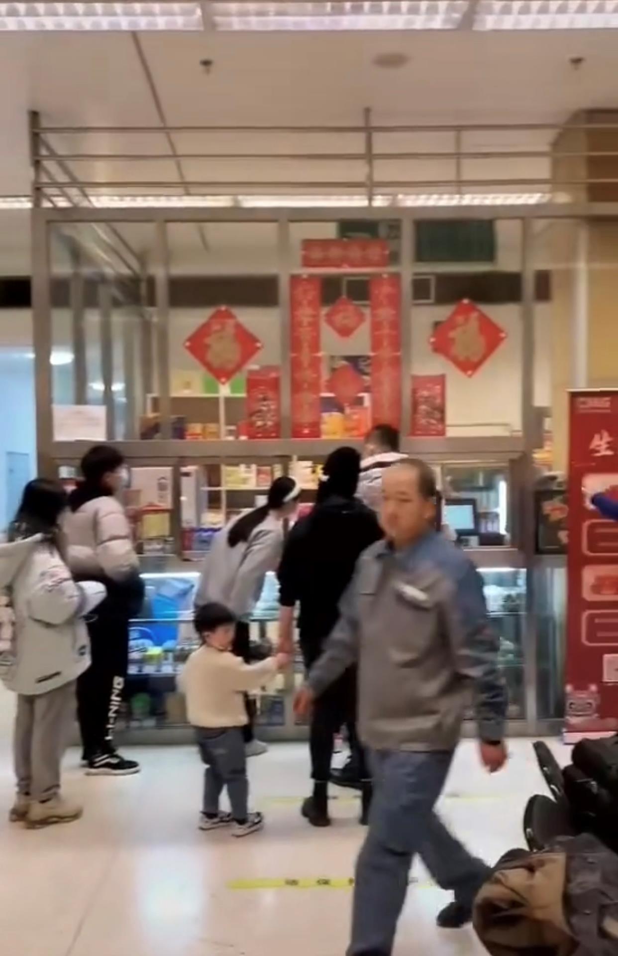 理发室不远处还有一间用玻璃围起来的小卖部,其窗口上方贴了不少大红色的春联,同样极具过年的氛围。