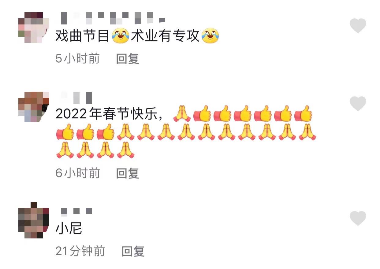 视频曝光后,网友们纷纷在评论中留言,有人看见戏曲节目使用的头饰后期待满满,有人则写出了自己喜爱的央视主持人董卿和尼格买提的名字,看得出来他们特别期待这两位优秀的主持人出现在春晚的舞台上。