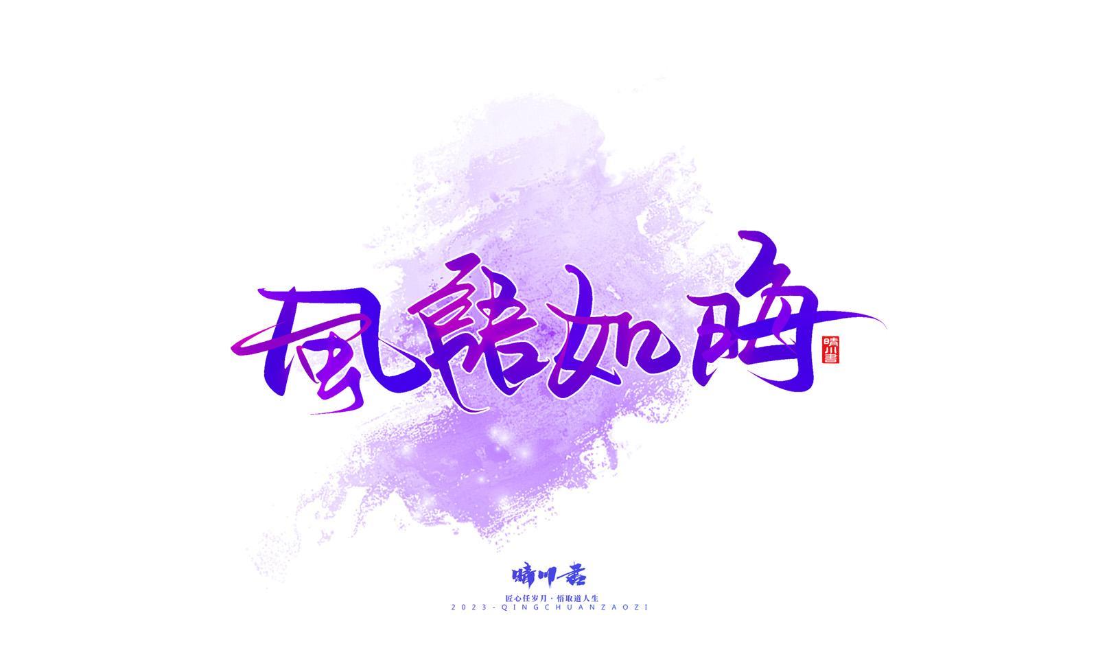四字诗词,字体字形下笔迅速,流畅,渐变格局得当,字体排列清晰,一种小清新加狂放不羁。