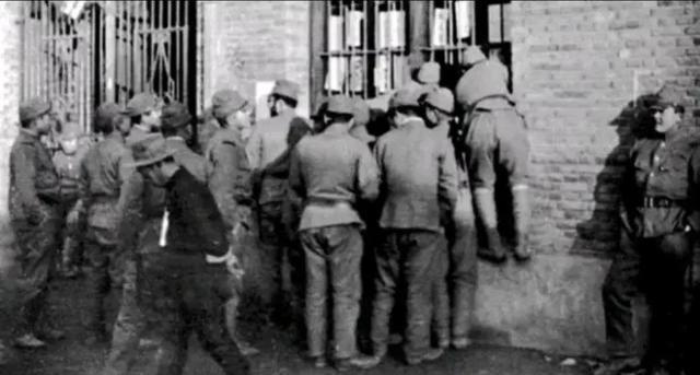 第三张照片显示了侵华战争中的日本军队,尤其是在慰安所外等候的场景。日本为了提高其军队的士气,在朝鲜半岛、中国、越南等地设立了许多慰安所,强迫当地妇女从事相关工作。