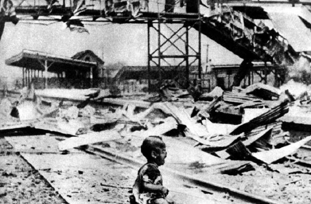 第九张照片令人痛心。这张照片拍摄于日本对中国上海的轰炸后,展现了唯一的幸存者王家升,他当时只有两岁。在侵略者的残暴行径下,中国山河破碎,百姓遭受巨大痛苦,像王家升这样失去父母的孩子数不胜数。