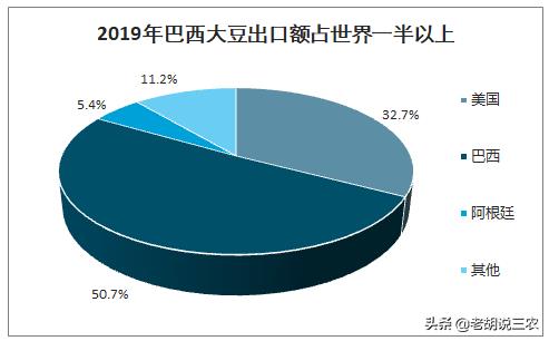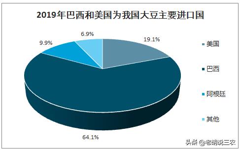 据相关信息表明:2019年我国共进口大豆约一亿吨,大豆进口国主要有美国、巴西、阿根廷,其进口大豆占全部进口比值分别为19.1%、64.1%、9.9%。也就是说巴西是我国最主要的进口国,其次为美国和阿根廷。