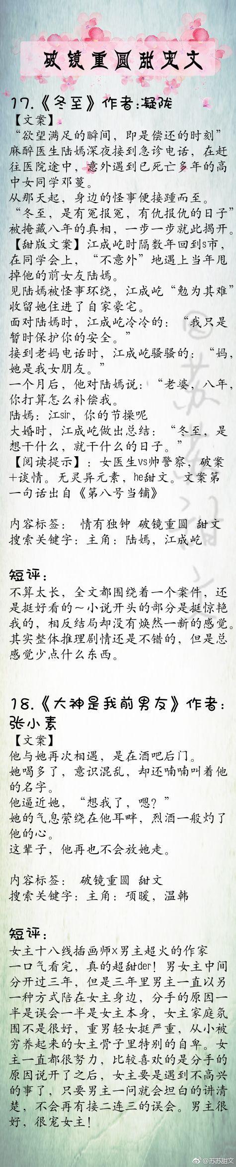 墨宝非宝的《归路》,东奔西顾的《只想给你好好的》,蒋牧童《我的世界只有他》,君约的《我的城池》,长宇宙的《南北往事》都超级好看,有甜有虐,看不够,注定在一起的人,一定会找到重温旧梦的路!