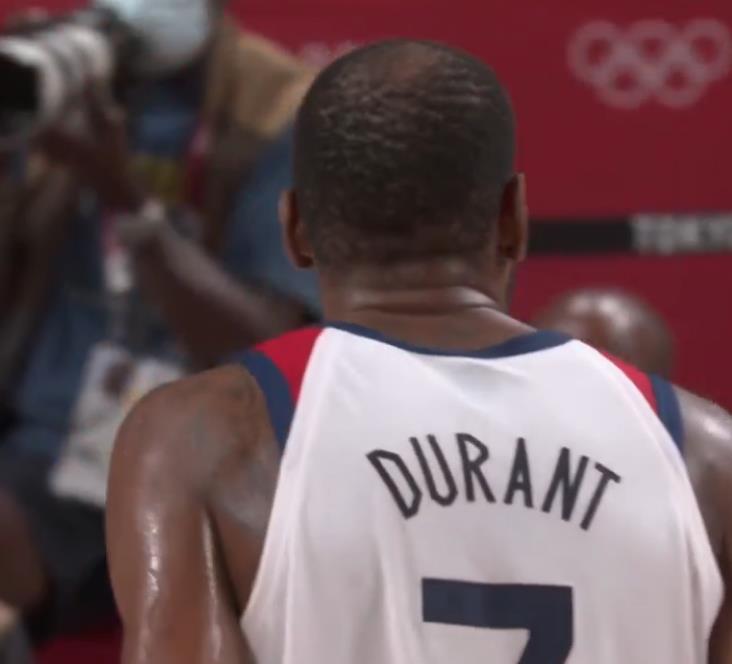 决赛面对法国男篮,美国男篮首节开局并不顺利,一度4比10落后。在球队打不开局面的阶段,杜兰特连续利用中投打击对手,扛着球队前进。仅仅首节比赛,杜兰特就拿到了12分。首节战罢,美国男篮22比18领先。从第二节开始,美国男篮没再给法国男篮任何反超的机会。每当法国男篮追近比分,美国男篮总有人挺身而出,保持领先。最终,美国男篮87比82击败法国男篮,获得东京奥运会冠军。