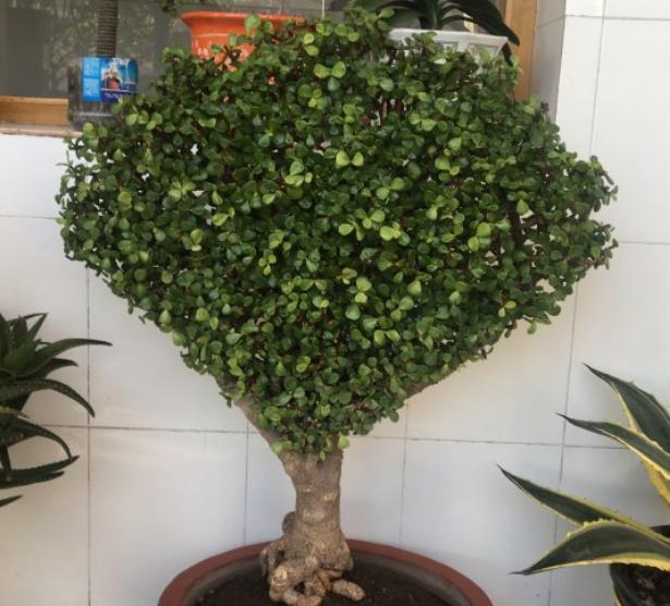 这样就能够让他在不断修剪的过程中,底下不断的变粗,侧芽逐渐的在修剪的过程中越变越多,整个植株株型就会非常的丰满,无论您是想培育一个大树形状的,还是一个其他的形状,主要是根据自己的修剪过程中不断的塑形,让他憋出自己想要方位的侧芽来,适当的保留长度,再去给他修剪。这就是金枝玉叶修剪的方法,当然了,我们养它想要有一个形体的话,自己脑子里要有一个大体形状的图片,按照你想要的图片去合理的给他修剪造型,就能够养出你想要的形体。