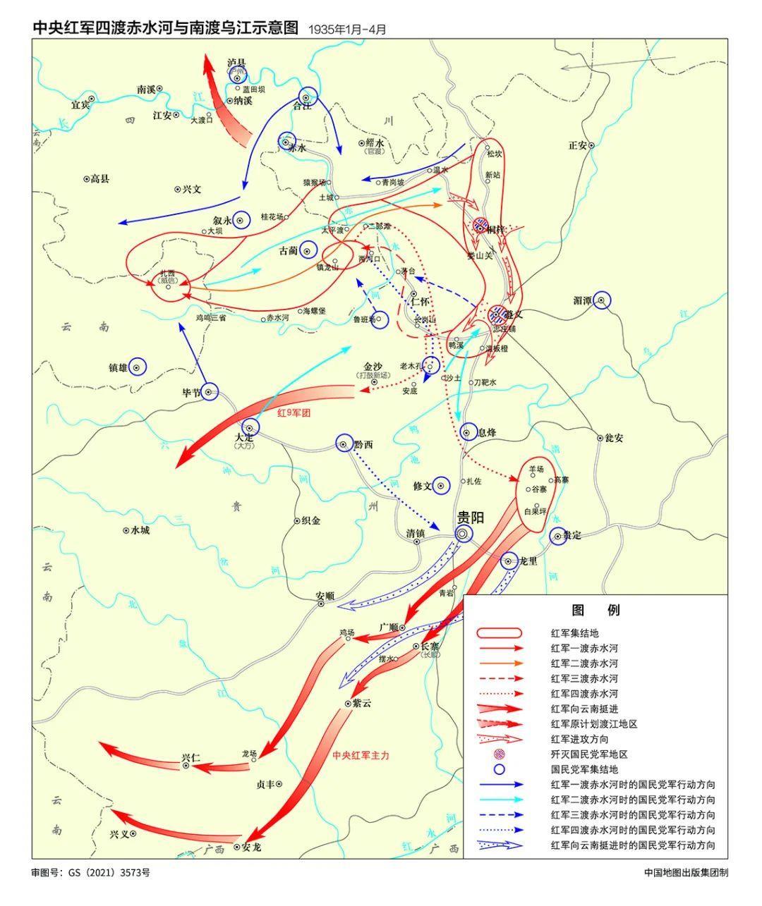百年特辑|每日红色地图——中央红军四渡赤水河与南渡乌江示意图