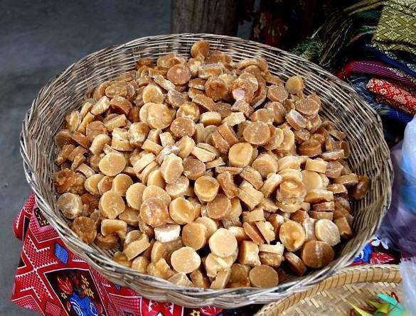 棕榈树是柬埔寨的“国宝树”,棕糖就是将棕榈树的花蜜慢慢熬煮而成的一种粗糖,虽然其貌不扬,但是除了含92%以上的碳水化合物,也含蛋白质及微量脂肪,以及矿物质如铁、磷和钙,具有平衡血糖和血脂的神奇效果。