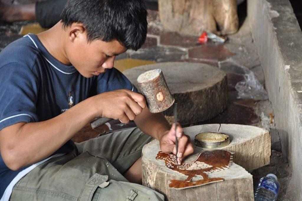 柬埔寨的皮雕工艺品很出名,皮雕的钥匙扣、皮雕钱包等,图案栩栩如生。柬埔寨的一些孩子从小就学习皮雕,这既是对传统手工艺的一种传承,又能卖些钱补贴家用。
