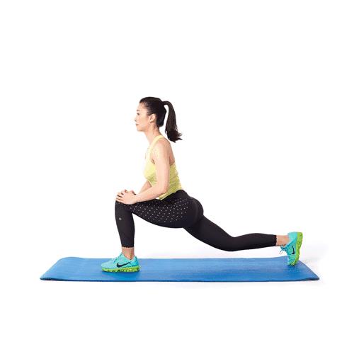 上体育课时,我们经常用到这项热身。身体呈弓步下蹲,迈左腿,让胯部最大幅度下压并放松,接着换另一边腿,动作照旧。