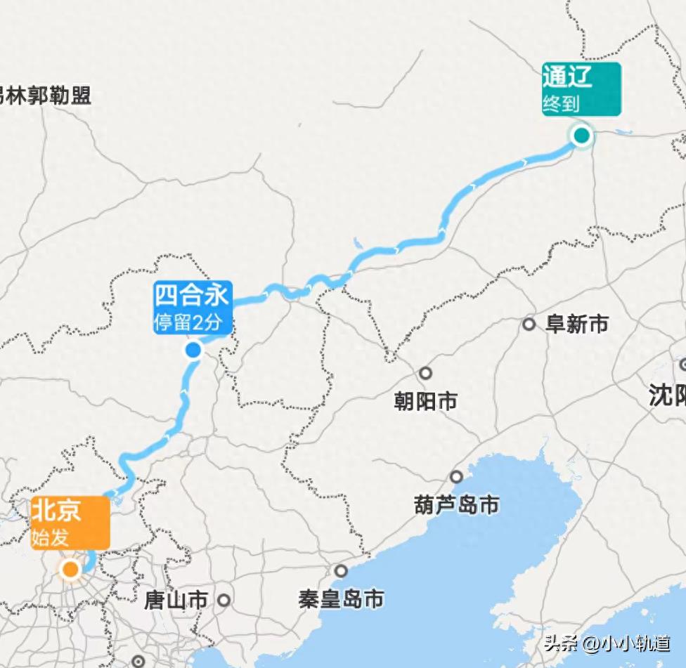 途经线路:沿京哈线(北京站),京承线<列车通过双桥>,怀范联络线<列车通过怀荣>,京通线<列车通过雁栖湖>(四合永站-通辽站)等运行。其中,京通线运营速度100 至 120 km/h。