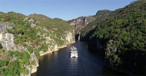 罗平鲁布革三峡因鲁布革水电站的蓄水,而向世人展示了一幅"高峡出平湖,山峦叠翠,碧水荡漾"的天然画卷。乘坐游船进入峡谷,可深深感受到“两岸猿声啼不住,轻舟已过万重山”的意境。在峰峦河流间,因喀斯特岩溶地貌形成的迷人石芽与孤峰、峰林与峰丛,犹如大自然鬼斧神工雕塑而造就的人间仙境。鲁布革三峡景区集自然风光、人文景观和现代科技于一体,不同的视角能欣赏到不一样的风光,向您展示着大自然的神奇与险绝,鲁布革大坝的修建也展现了人类改造自然的不朽佳作。