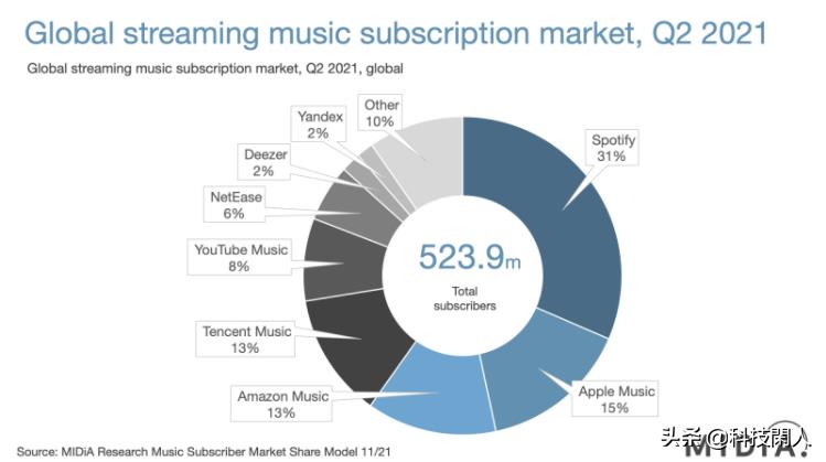 从整体在线音乐市场来看,实际上是各家厂商生态角力的产物,从Soptify来看,它的些许下滑实际也是薄弱产品生态的必然,因为像苹果这样的厂商有手机、Airpods系列这些的硬件生态,并且苹果现在开始支持空间音频 和高清音乐播放,对于在线音乐平台用户的转移,起到了推波助澜的作用。
