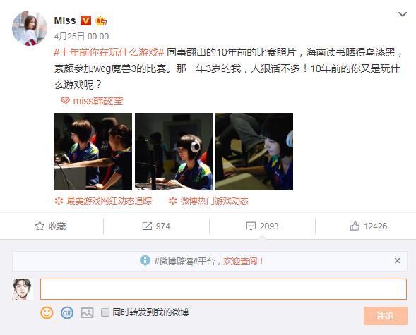 在近日,Miss在微博上发表了自己10年前的照片,不过却不是普通的照片,而是当年Miss在海南读书的时候,参加WCG魔兽3比赛时的赛场照片。我们都知道Miss在成为一名LOL主播之前,一直都是一个魔兽的职业选手,而且技术也是非常不错的。