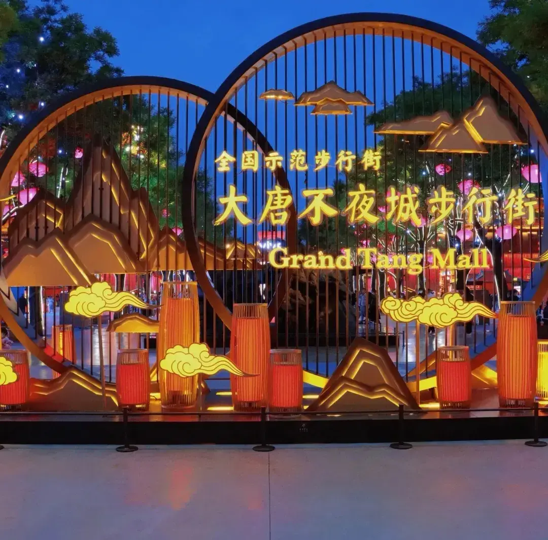 10 大唐不夜城:全天免费开放,并有各种唐文化表演免费观看。这里的街道富丽堂皇,让人仿佛穿越回了大唐盛世,秒杀了很多商业街。