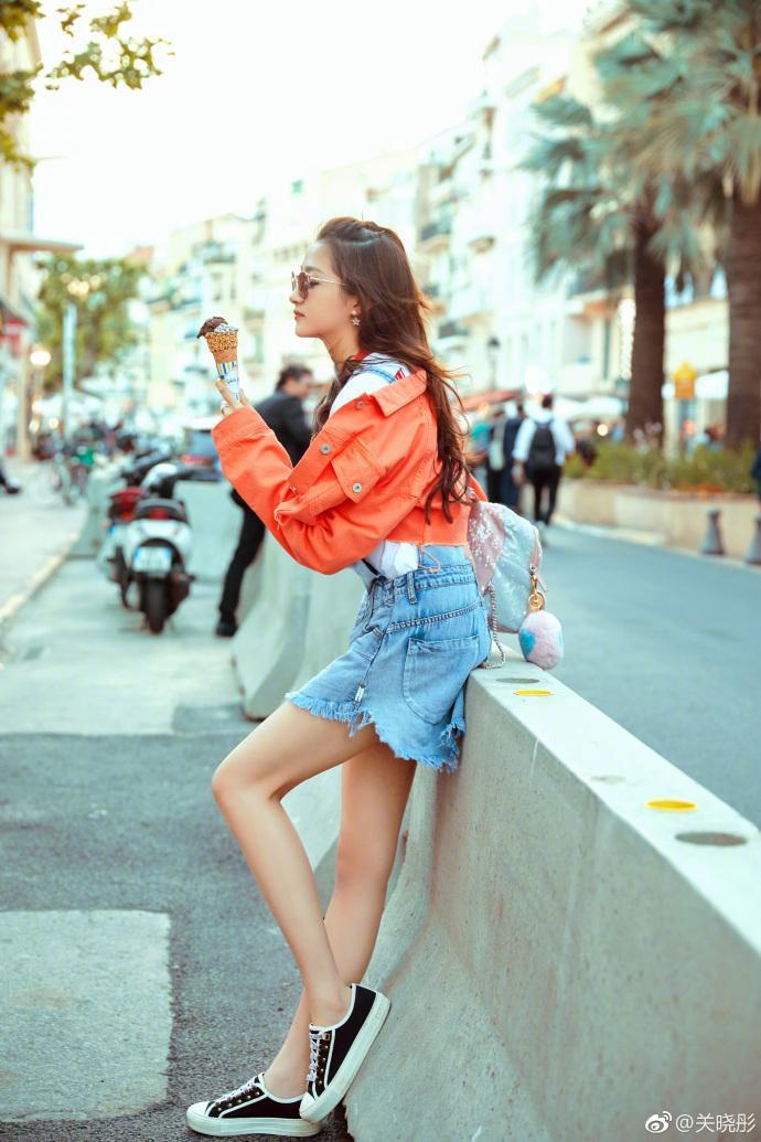 日前,关晓彤也在微博秀出自己的美照,并配文称:“夏天的风,暖暖吹过。”照片中的她身穿亮橙牛仔服配背带短裙,满屏青春气息。她漫步戛纳街头,时而微笑时而俏皮托腮,充满活力。修长美腿十分瞩目。