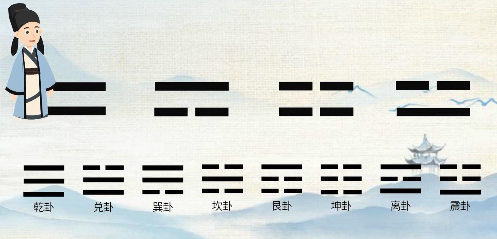 这八个卦象最开始指的是太阳历八节,分别是冬至,夏至,春分,秋分,立春,立夏,立秋,立冬。