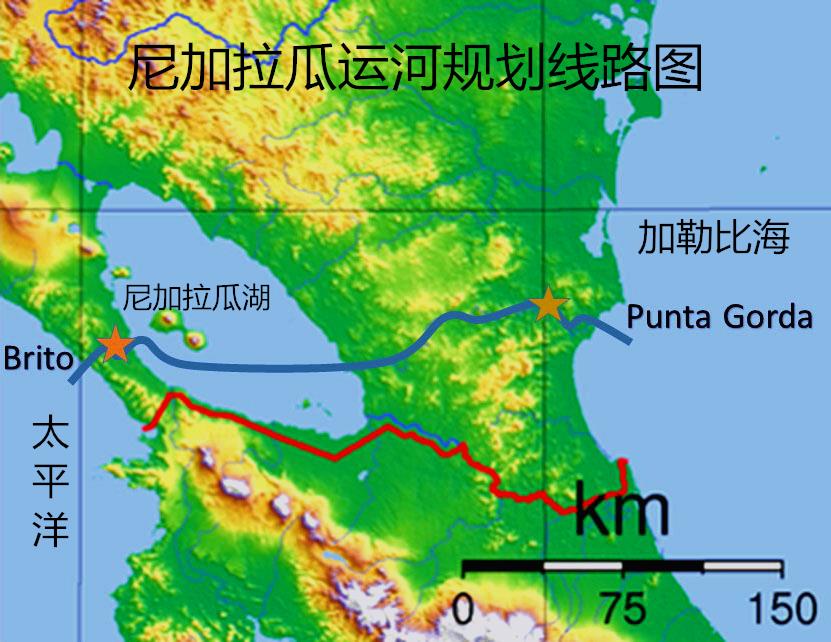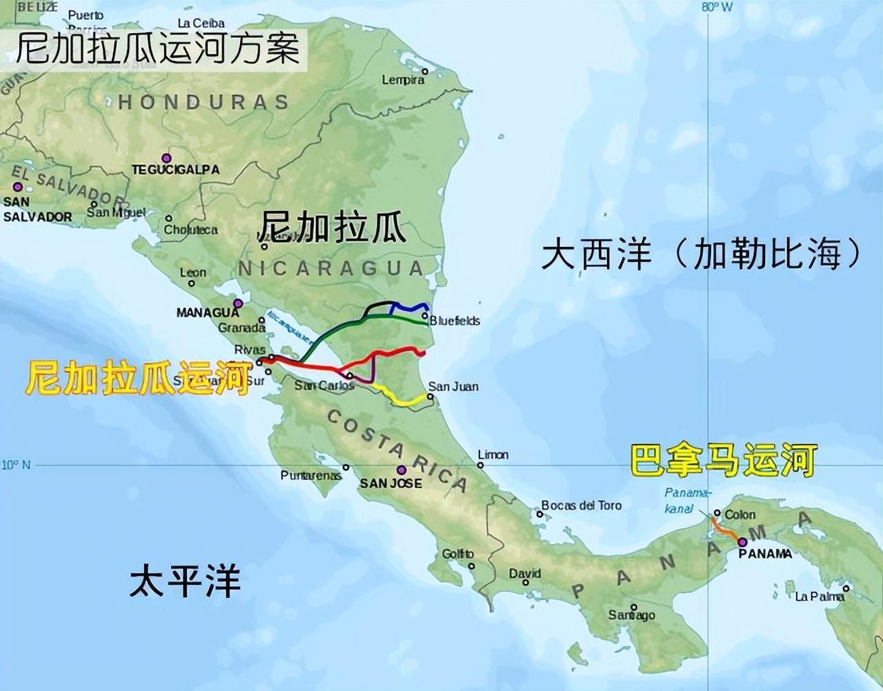 尼加拉瓜运河规划线路图