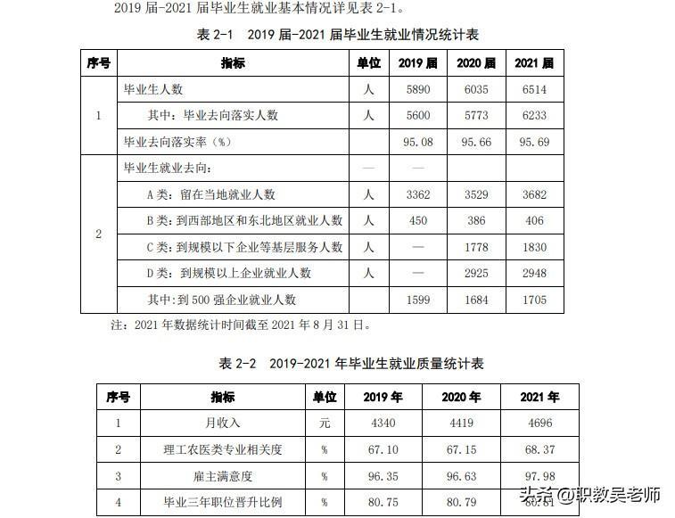 毕业生就业单位以企业为主,到规模以上 企业就业人数 2948 人,占毕业生总数的 45.26%,其中到 500 强企业就业 1705 人,占 毕业生总数的 26.17%;专升本及出国留学毕业生 1359 人,占毕业生总数的 20.86%; 参军入伍 96 人,占毕业生总数的 1.47%;自主创业 22 人