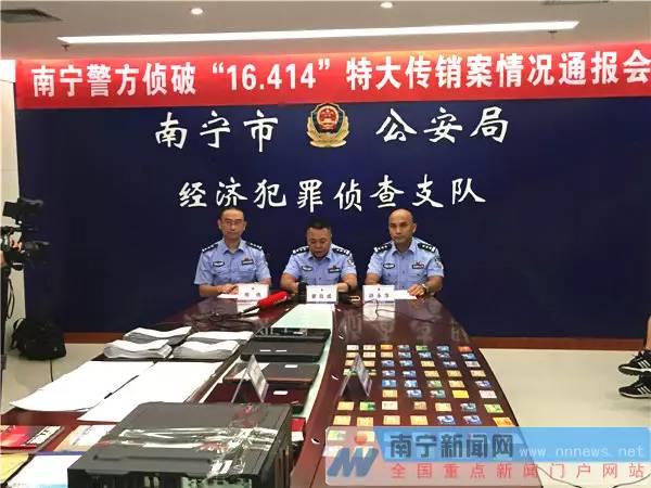 经过一年多的侦查,近日,南宁警方成功侦破了“16.414”特大传销专案,该案件涉及人员8000余人,涉案金额达15.19亿元。8月21日,南宁市公安局举行新闻发布会,通报特大传销案件。