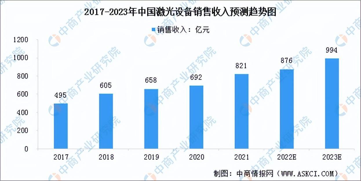 随着疫情的放开,经济整体出现复苏活跃现象,传统制造业也跟着一起焕发新的活力。进入2023年,根据《2022中国激光产业发展报告》数据,2021年我国激光设备行业市场规模达到821亿元,预计2023年国内激光设备行业市场规模将达到994亿元。