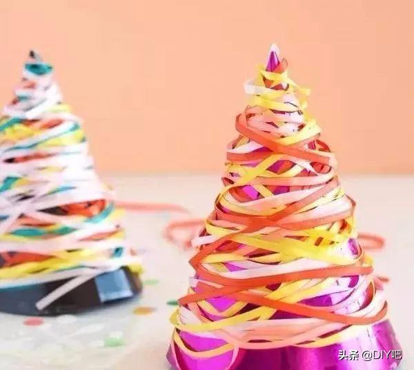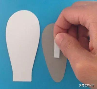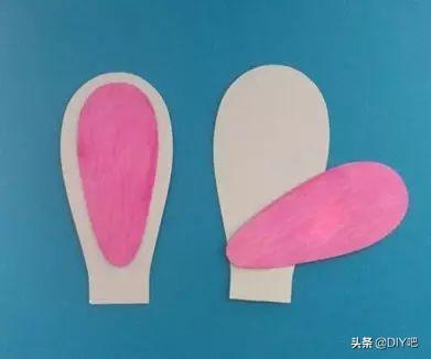 【制作步骤】从绿色卡纸上剪下两个纸条,粘在一起