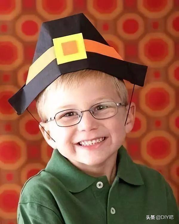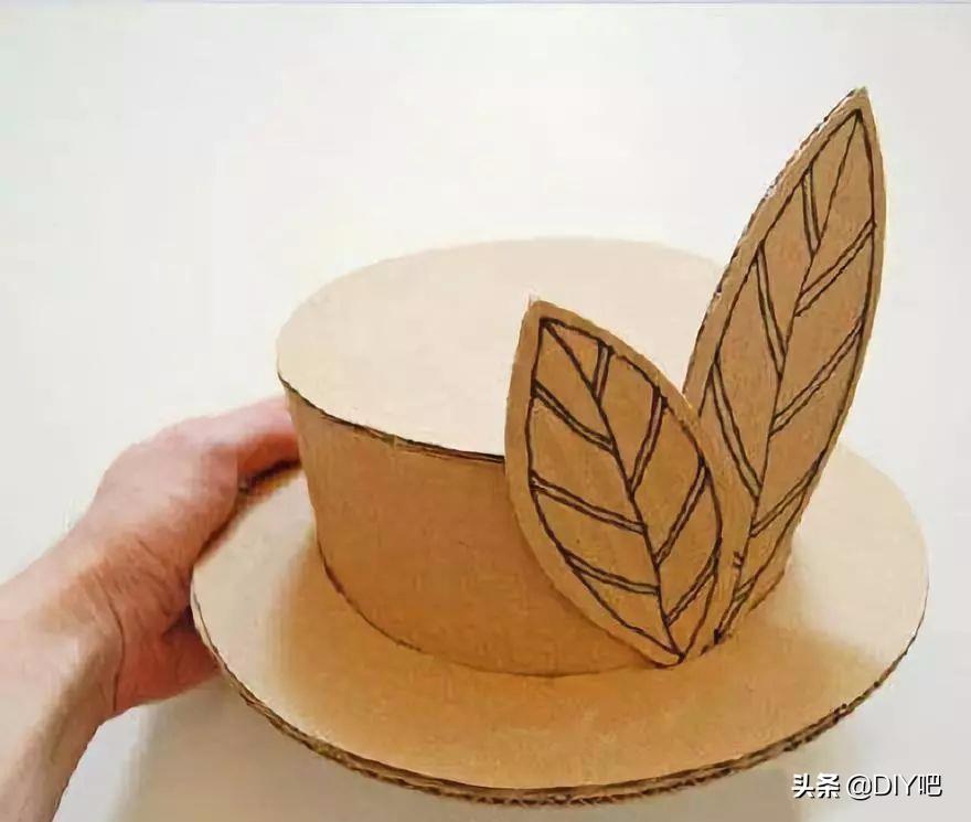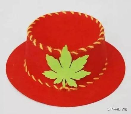 粘贴上一个漂亮的小枫叶做装饰,一顶漂亮的DIY手工礼帽就做好了