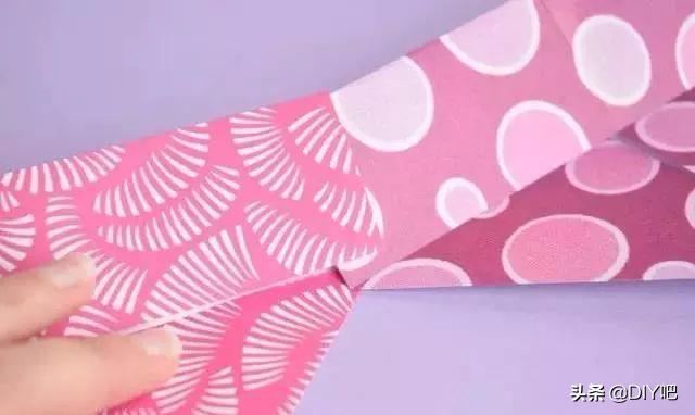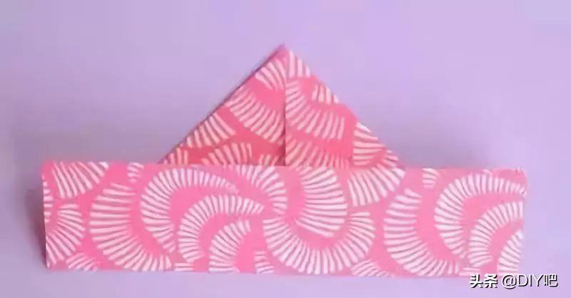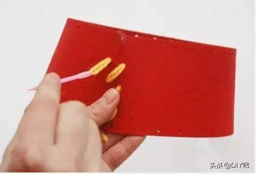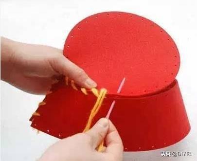 将不织布裁成长条梯形,作为帽身。将帽身对折,用锁边(从上往下)的方法进行缝制。