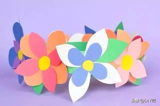 粘牢纸条,小花冠就做好了!快戴上试试吧~